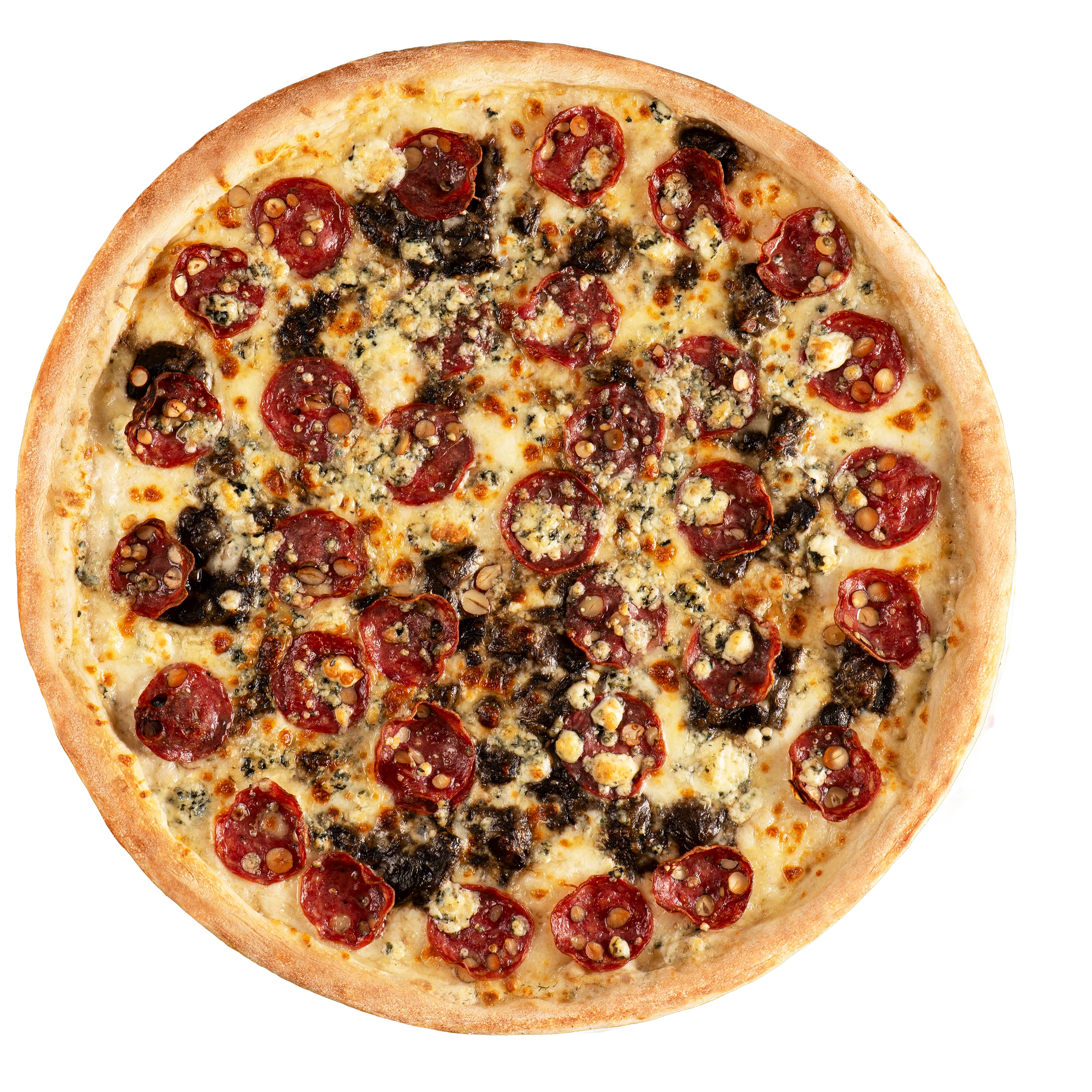 mozzarella / spód majonezowo-truflowy/ ser Lazur / salami z orzechami laskowymi / grzyby leśne / sos truflowy / oregano